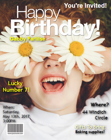 No matter the event, whether for a child’s birthday party or for a retirement, there are multiple ways to use the magazine cover invitation. Purchase the photo file download and print yourself to send to your guests, print the magazine cover as a poster to use as a sign in board or decoration for the party, frame a print of the magazine cover invitation as a keepsake for the guest of honor.