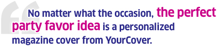 No matter what the occasion, the perfect party favor idea is a personalized magazine cover from YourCover. It is a truly unique party favor idea starring the special honoree and is one that will long be treasured once the event is over. A YourCover magazine cover is so easy to create and affordable too!